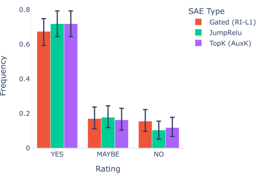 특히 점프렐루 SAE는 활성화되지 않는 ‘죽은 특징’을 최소화하는 데 매우 효과적이었으며, LLM이 학습한 특징을 식별하지 못하게 하는 과도하게 활성화된 특징도 최소화하는 것으로 나타났다. 이 결과는 점프렐루 SAE가 다른 최첨단 아키텍처만큼 LLM 해석에 유용하다는 것을 의미한다.
