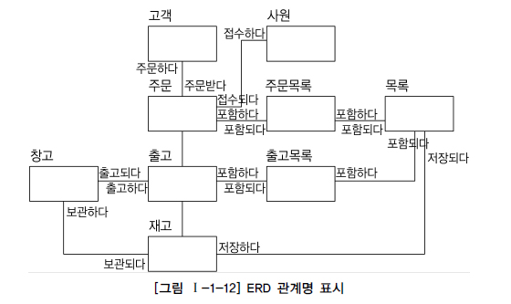 실제 프로젝트에서는 관계의 명칭을 크게 고려하지 않아도 무방하다. 왜냐하면 관계의 명칭이 나타나지 않아도 ERD의 흐름이 명확하게 드러나기 때문이다. 대부분의 관계는 엔터티의 성질과 주식별자를 보고 유추가 가능하다.