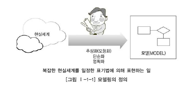따라서 모델링을 다시 정의하면 ‘현실세계를 추상화, 단순화, 명확화하기 위해 일정한 표기법에 의해 표현하는 기법’으로 정리할 수 있다. 정보시스템 구축에서는 모델링을 계획/분석/설계 할 때 업무를 분석하고 설계하는데 이용하고 이후 구축/운영 단계에서는 변경과 관리의 목적으로 이용하게 된다.