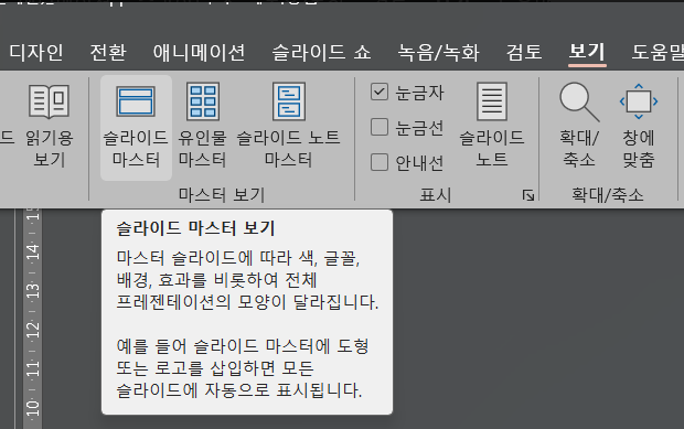 보기 > 슬라이드 마스터