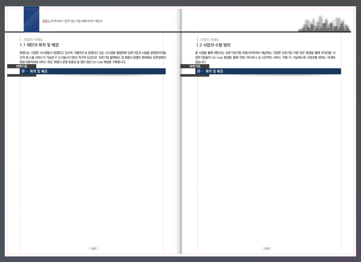 이렇게요. 제안서 작성 단계부터 실제 A3 사이즈보다 좀더 크게 제안서를 작성합니다.